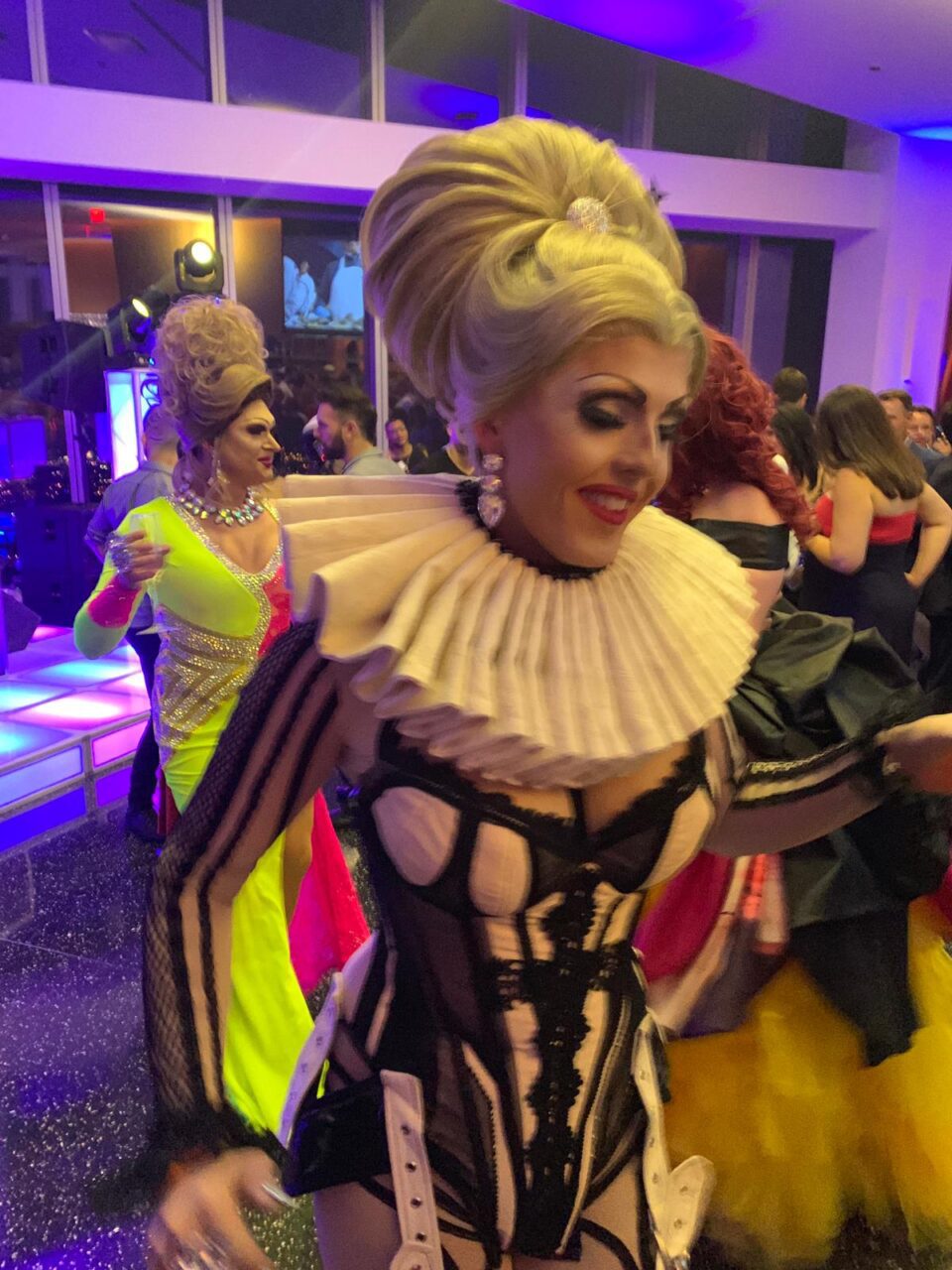 Entre as mãos acenando no ar estavam celebridades como Donatella Versace, dançando de um espaço VIP, o presidente da CNN Jeff Zucker, o comediante Billy Eichner e o ator de “Pose” Billy Porter, vestidos com tênis cor de pêssego e arco-íris.