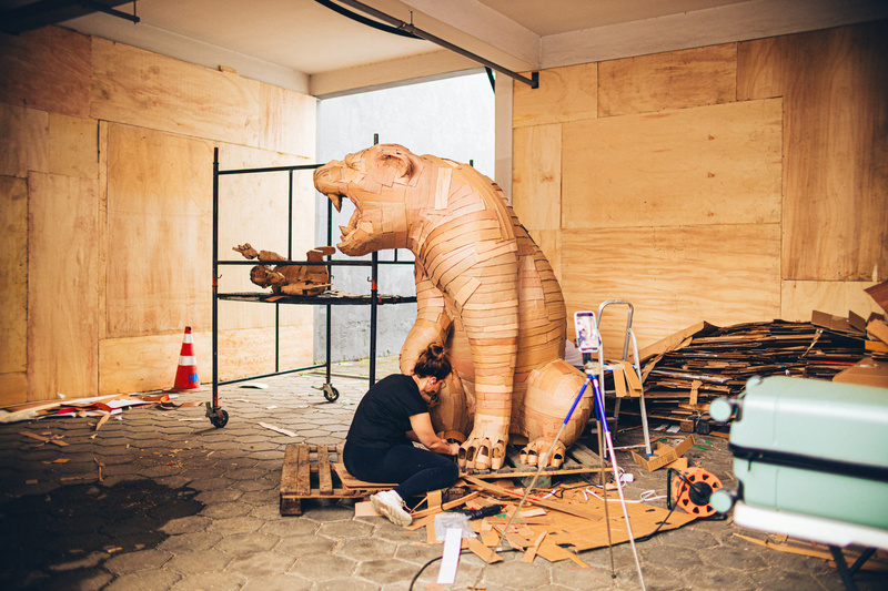 A artista canadense Laurence Vallières produzindo sua obra para o NaLata Festival. Crédito: @timedefoto